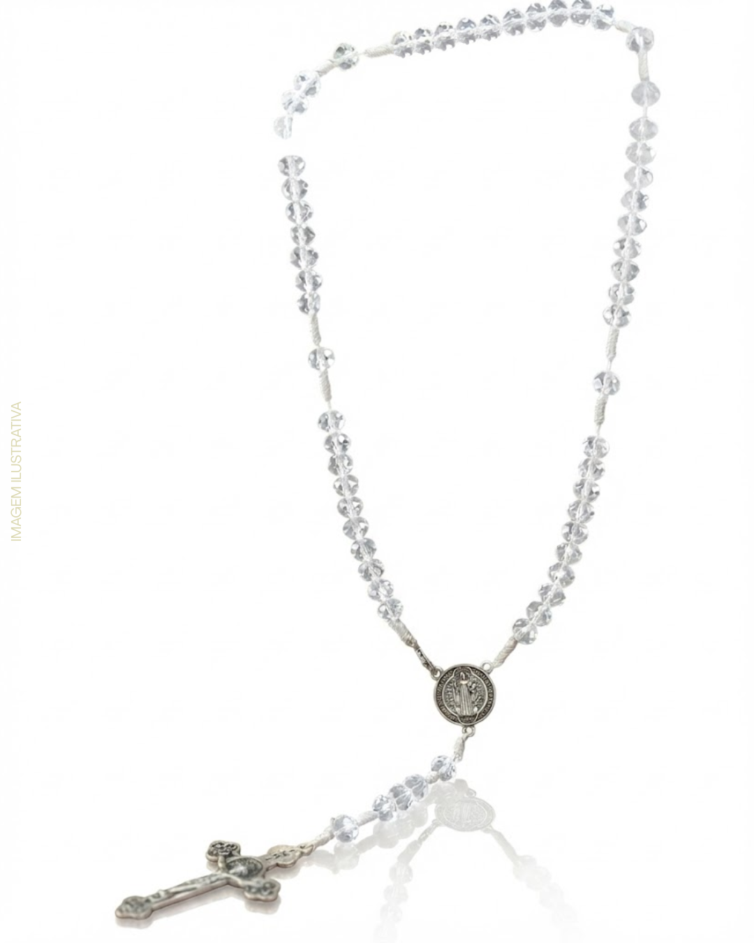 Terço artesanal confeccionado com cristais selecionados, montado em corda resistente de alta durabilidade e finalizado com nós franciscanos, que simbolizam fé, simplicidade e devoção.