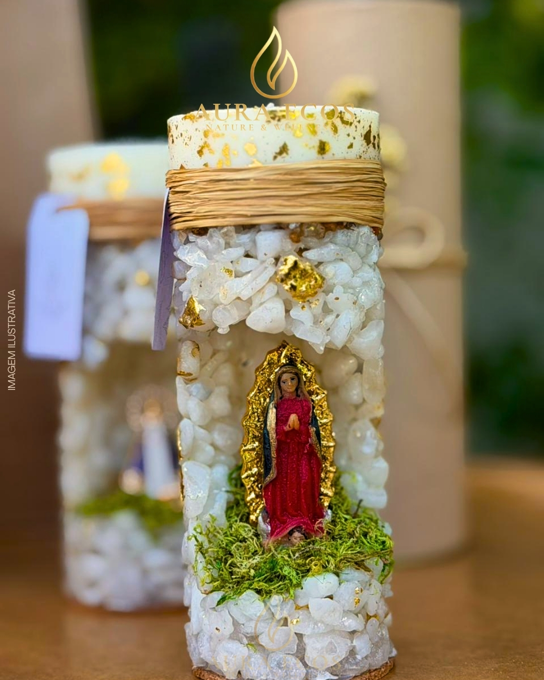 Vela oratória aromática de Nossa Senhora de Guadalupe, ideal para momentos de oração, fé e conexão espiritual.